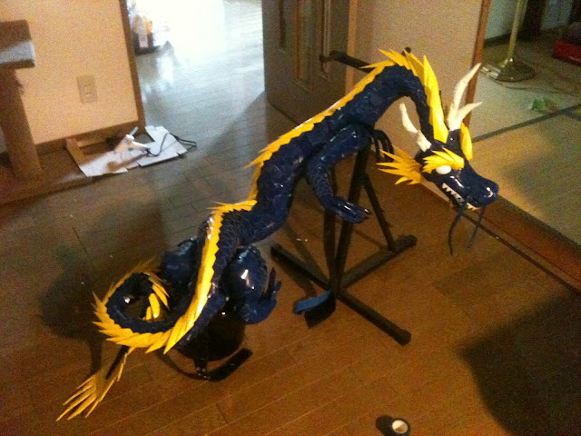 It was important to get the dragon as a whole to stay in place before I finished the front legs, because they are not structurally sound enough to support any weight by themselves.